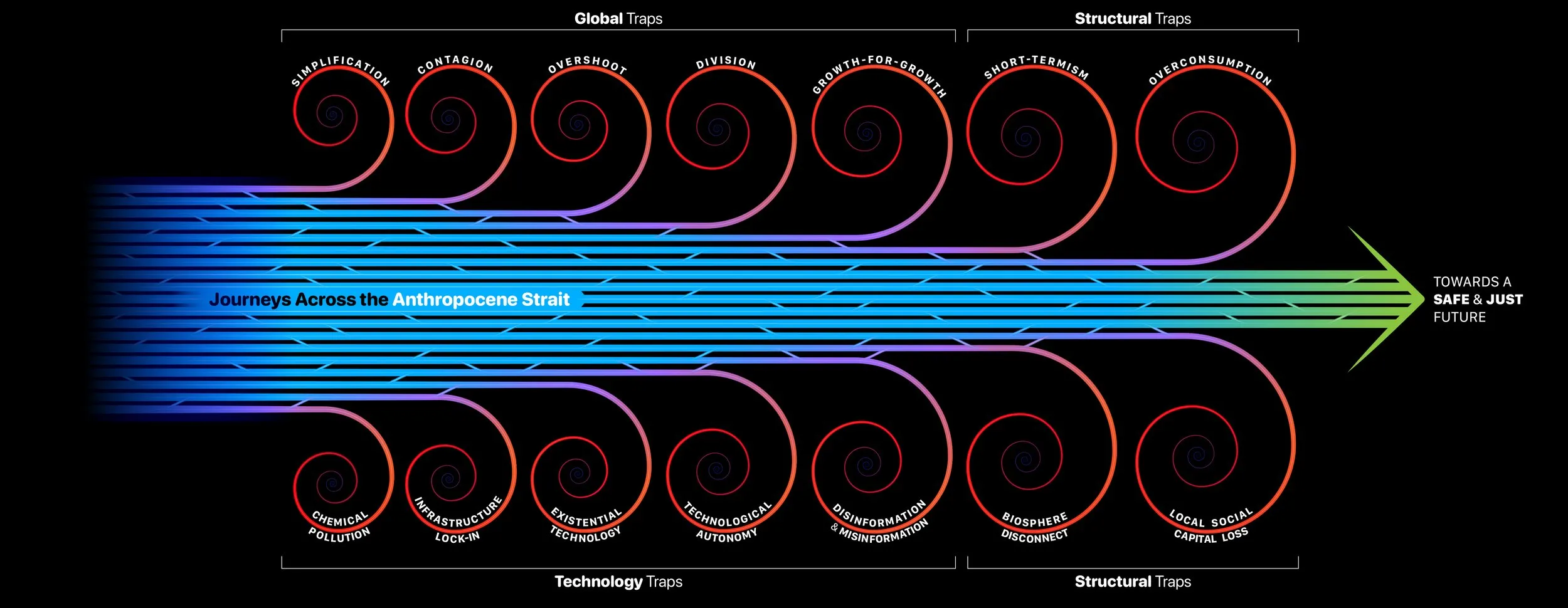- Trapping The final phase where entrenched mechanisms make it extremely difficult to alter the established paths, resulting in persistent negative impacts. These mechanisms include ecological tipping points, cultural inertia, conflicts, and mismatches in global management and perception.