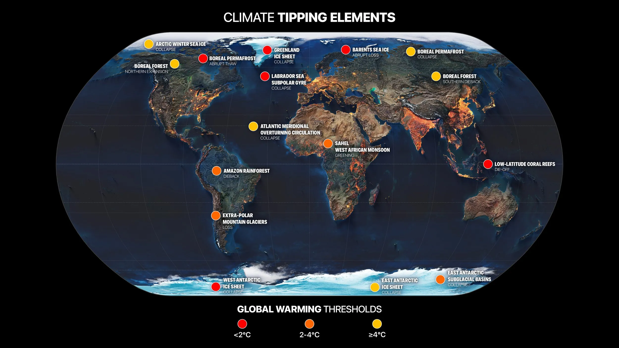 Ref: Armstrong McKay, D. I., Staal, A., Abrams, J. F., Winkelmann, R., Sakschewski, B., Loriani, S., Fetzer, I., Cornell, S. E., Rockström, J., & Lenton, T. M. (2022). Exceeding 1.5°C global warming could trigger multiple climate tipping points. Science, 377(6611), eabn7950. 📍 Our dedicated page